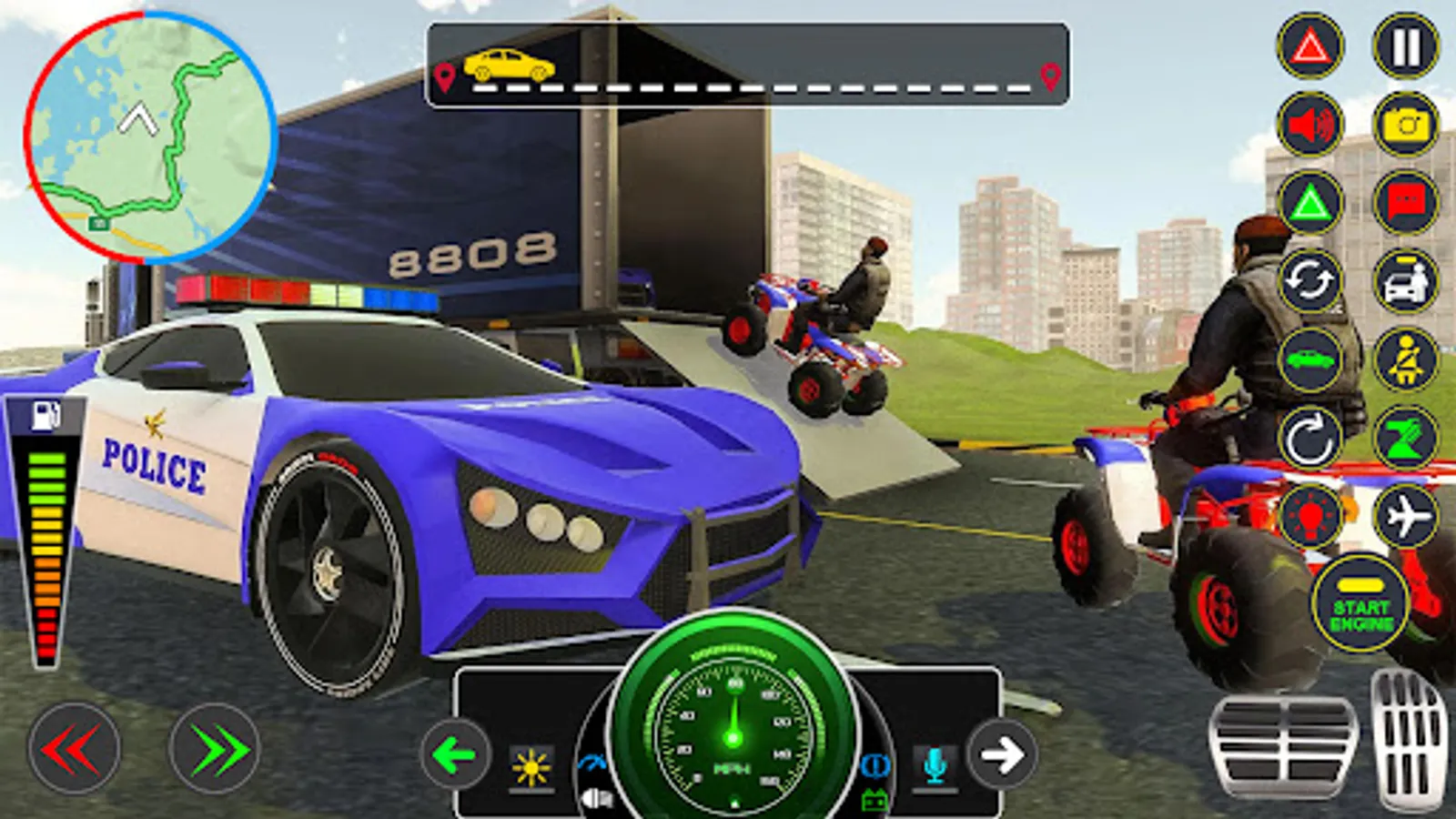 Join police squad and manage police transportation department in police plane car transport truck moto. Drive police muscle car efficiently to the airports, seaport. To load the police car, police atv quad bikes. We also have police jeeps, cruise ship driving, helicopter transport game. Police cargo truck loader driving to deliver them to police headquarters, car transport truck games.