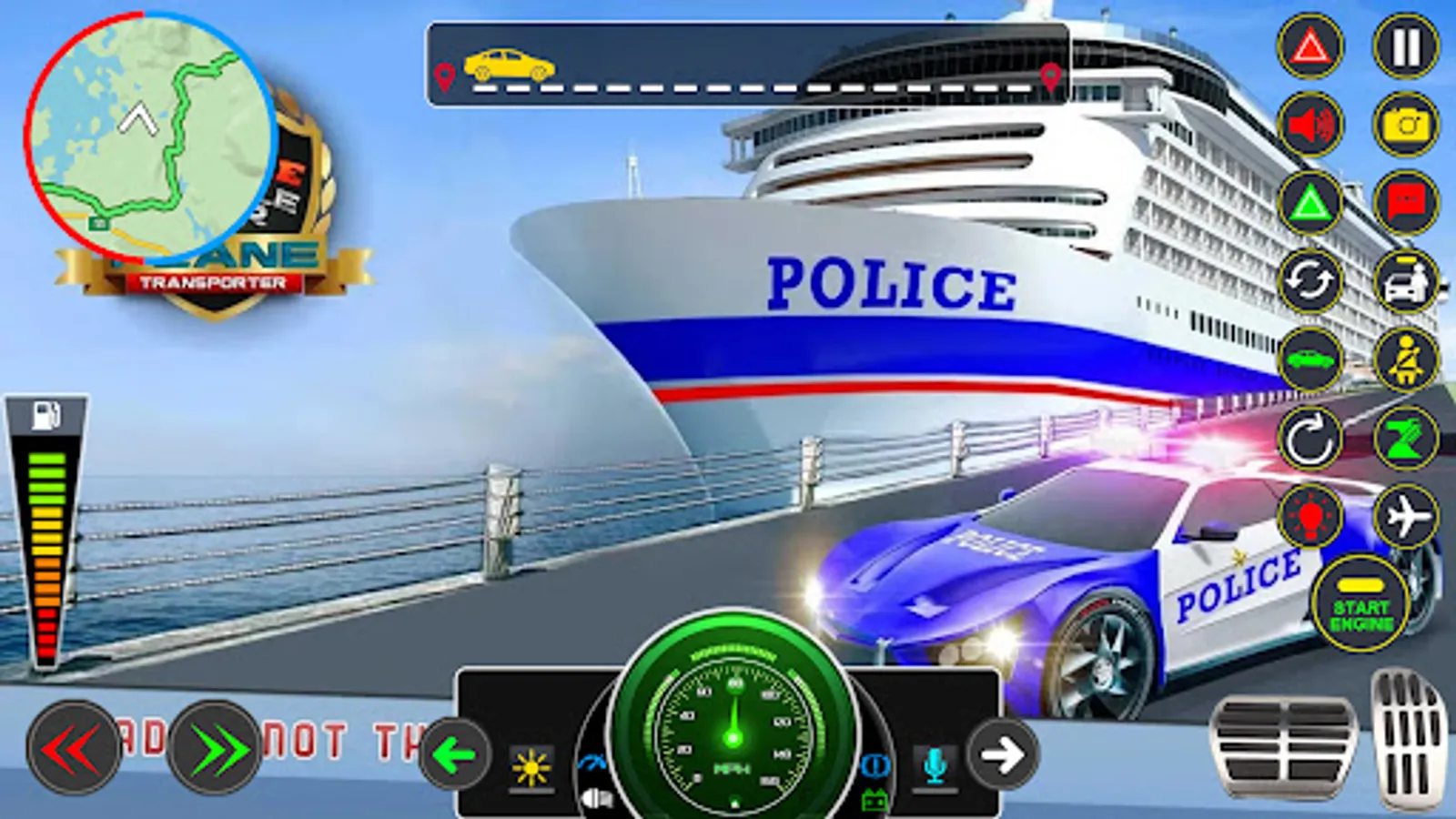 Theme of transporter game is transportation of police car game. Also police ATV quad bike, police muscle car, cargo through police plane car simulator. Cruise ship driving along with police cargo truck loader driving. Not to mention helicopter transport game missions. Those who love playing police cargo plane flight simulator will love challenges of this car games. With helicopter driving for police car transport truck game. Also bike transportation on cargo truck, cruise ship driving in police plane car games.
