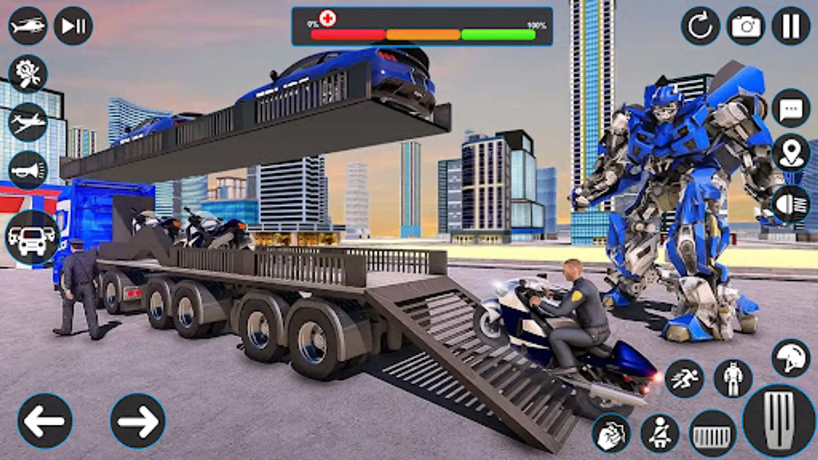 In Real Transport Games, transform robot into moto robots and get into Police truck and trailer truck then drive to the Us Police training centers. All these features in truck transporter games make Police Robot transportation as best transport Simulator games on store. This robot transform simulator will let you become a plane pilot & enjoy police mission game as police driving game. Combination and tactics involved in cargo truck delivery games & police plane flight simulator by trailer truck driving & pickup truck driving missions are full of thrill and most challenging. Heavy Trailer Truck Transporter & Euro Cargo Tuck driver transporter game with duties of Muscle car robot transformation game. A big responsibility on your shoulder for transporting police motorcycle, sports cars as robots through cargo truck & city cargo airplane safely. It’s a best time to play this transport game with joy of truck driving and car transportation like police robot games & robot transforming games. This Police Plane Transport Simulator Games along with its truck games, ship games, plane games & robot games have smooth and easy controls.