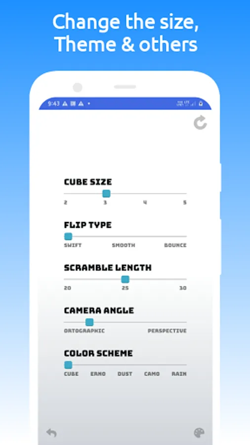 ✓ Different Colors & Sizes - You can change the color of the cube and background theme. You can also change the size of the cube from 2x2x2 to 5x5x5.