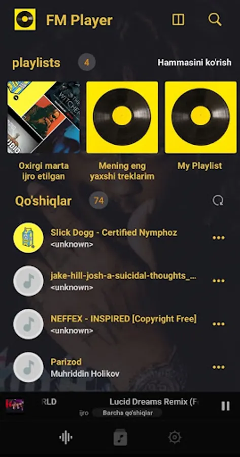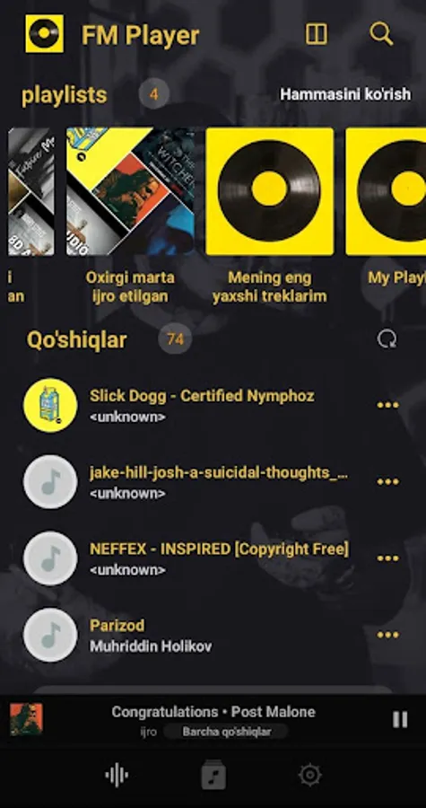 Bepul musiqa pleyeridan bahramand bo'ling - sevimli qo'shiqlaringizni tinglang. FM Player ilovasidan foydalanganda, agar sizga yangi xususiyatlar kerak bo'lsa, men bilan bog'laning. Men musiqiy pleyerimni yaxshiroq qilishga harakat qilaman.