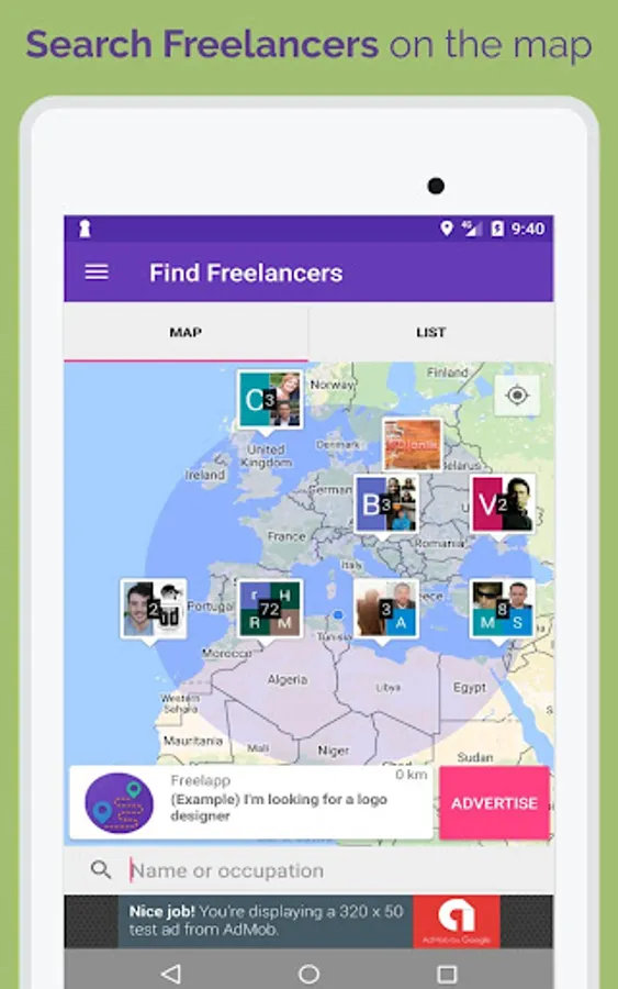 You can advertise your freelancer services for a very small fee for greater visibility than appearing on the map. Get noticed before hundreds others!