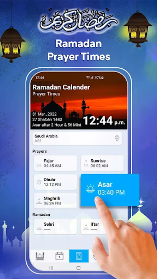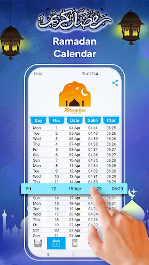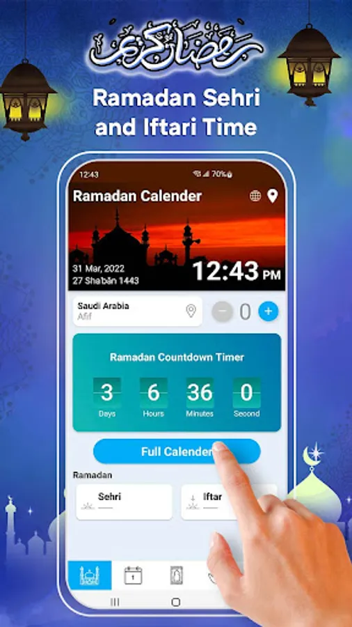 In our multi-feature ramzan time table 2024 and Muslim calendar app 2024, detect your current location and get accurate sehir and iftar timing. In our Ramadan app, users can use this Ramadan timetable app, anywhere and everywhere. With the help of this Muslim pro app, you can set reminder notifications of sahir and iftar.