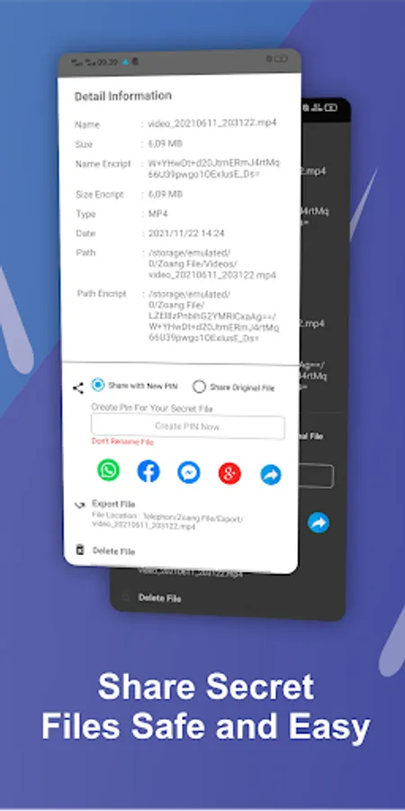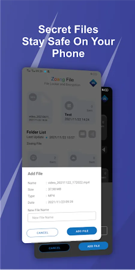 Zoang File is an application that you can use to encrypt secret files on your smartphone. Zoang Files application is also equipped with an 8-digit security code (PIN) to lock your secret files. With Zoang Files you don't have to worry about losing your secret files, because all your encrypted secret files are still stored on your smartphone.