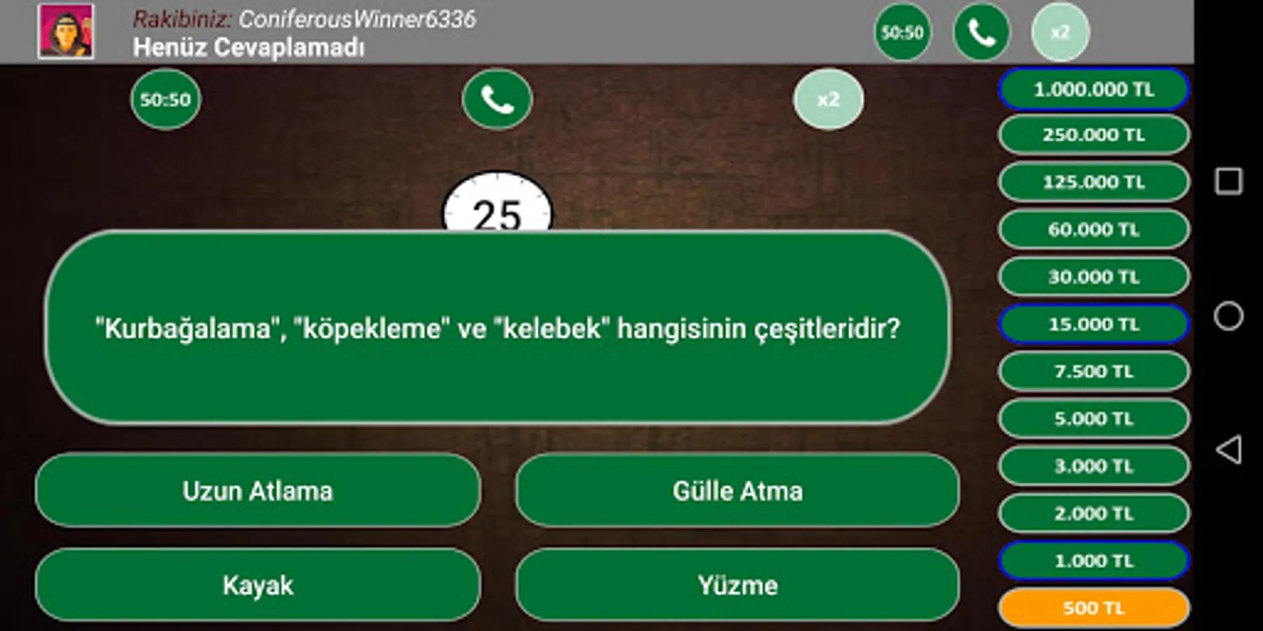 In the game you are entitled to 3 wildcards. This wildcard rust, phone calls, and are jokers half. If you answer pairs answer questions correctly will win $ 15,000 in the lifeline.