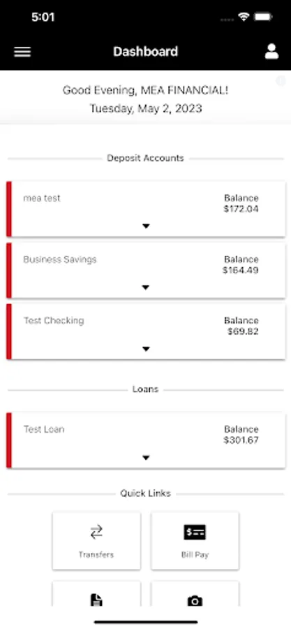 **Online customers must first setup transfer and bill pay accounts prior to using these features.