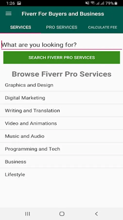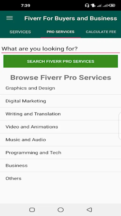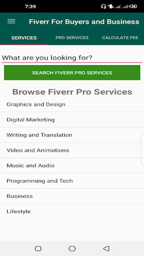 If you are looking for professional services for your business then you can search these services on App's Fiverr Pro Section where you will find a lot of pro services ready for delivered to your business.