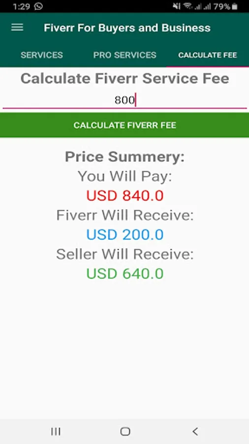 This simple and lite-weight app quickly search for services you are looking for your business. If you are an individual buyer then you can benefits from this app too. You can also easily calculate how much you pay for fiverr order or service, your seller revenue and fiverr fees.