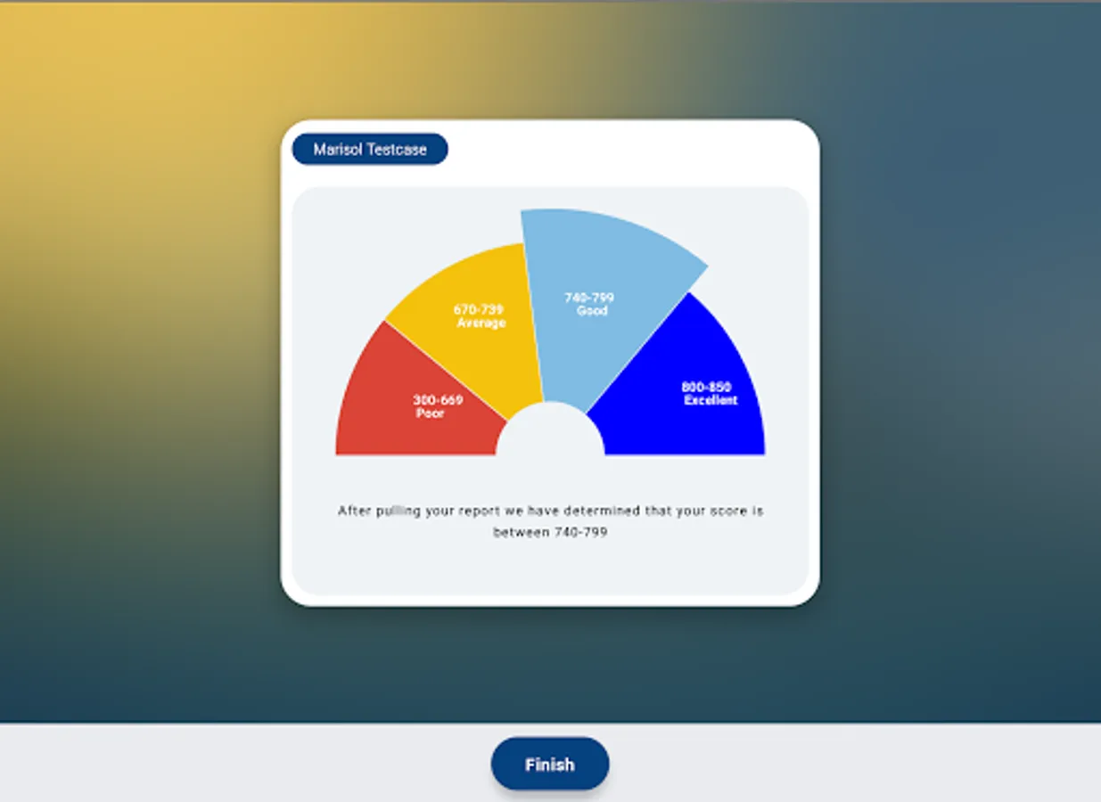 Allow customers to provide basic information in an easy-to-use interface to look up their credit rating. This credit retrieval is a consumer (soft) pull that will not affect their credit and can help inform them in their home purchase decision.