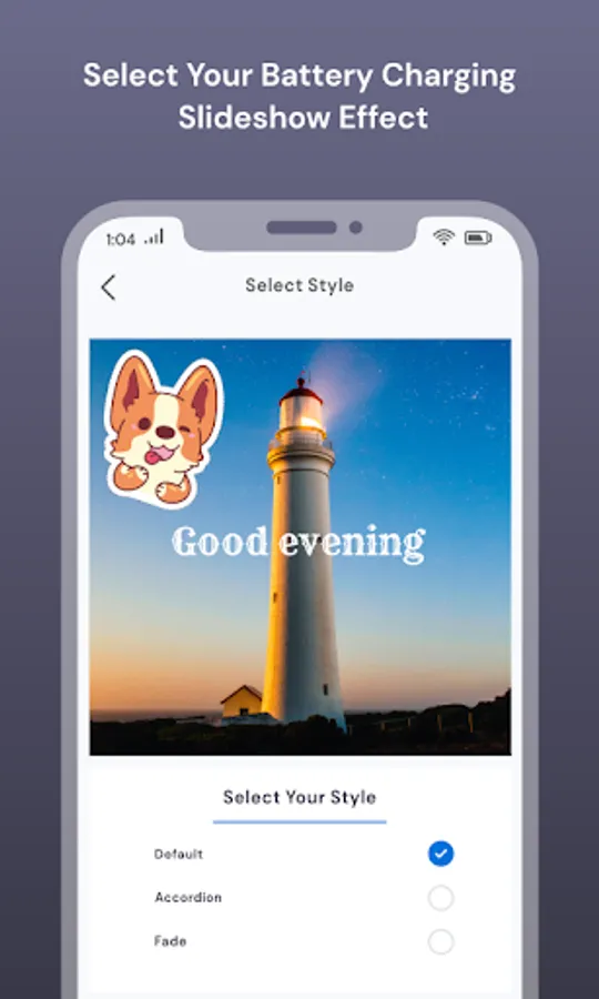 Have a slideshow with photo animation while your phone is in charging. Get multiple slideshow effects for your photo slideshow. Adjust image slideshow duration to change photos. Also with slideshow you get option to edit your photos with various photos effects, filters, add stickers & text on photos.
