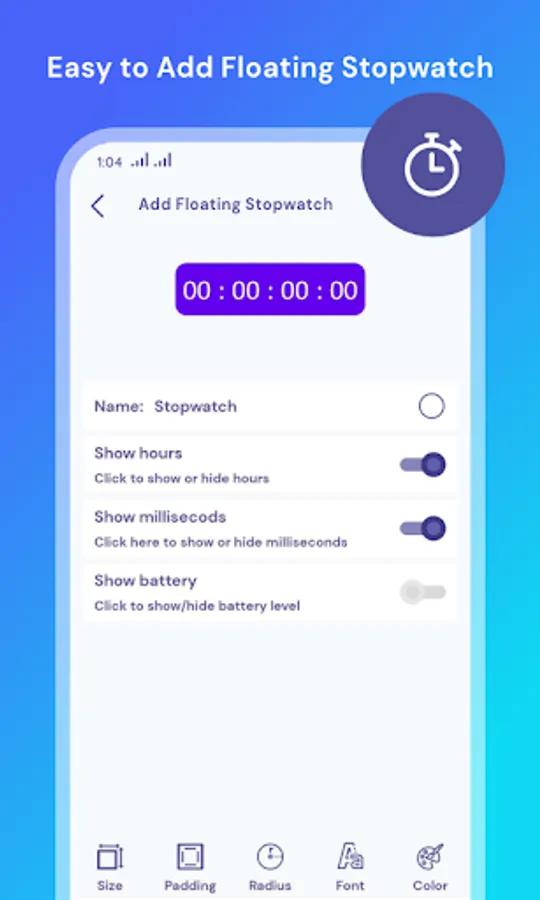 - As floating clock you can also add stopwatch on you phone screen.