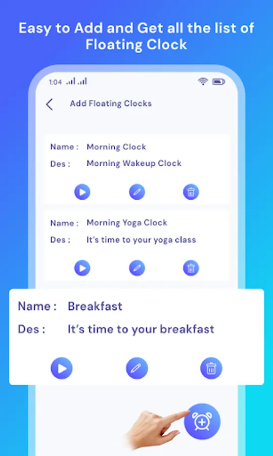 Create movable Floating clock, Stopwatch and Timer any where on phone screen.
