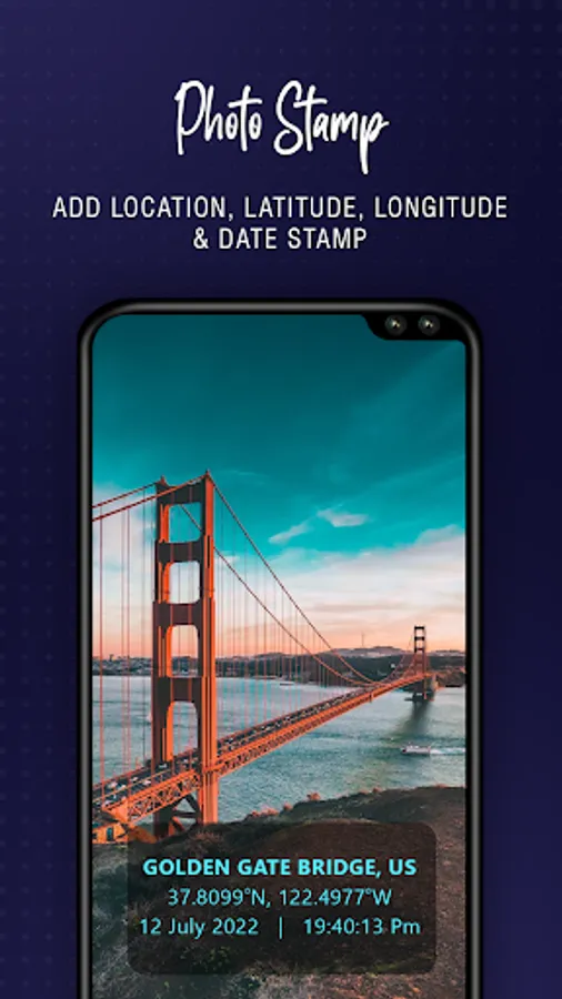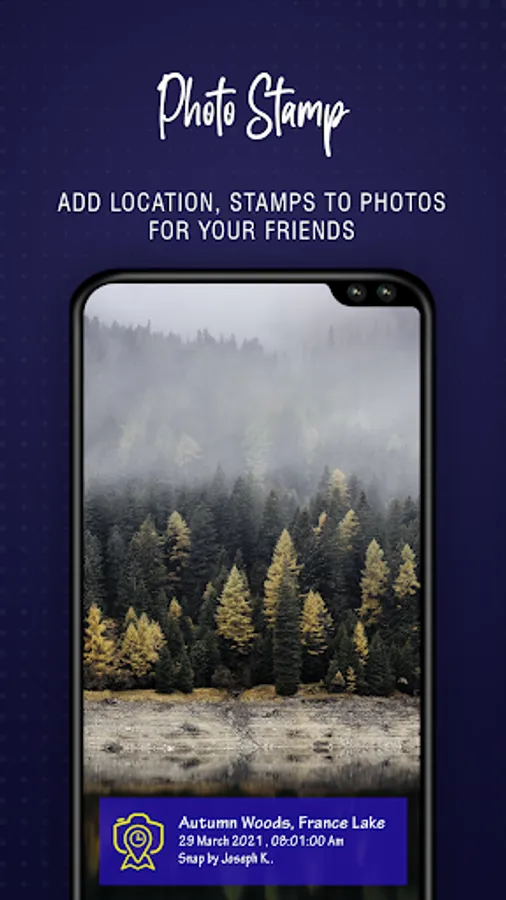 Photo Stamp Camera will allow you to add details of Location, Time and date of the photo taken by you using your mobile camera. You can get these details blend in your photo using this application. It helps you remember the date time and place of the photo taken. Also add any remark that you want to add on the photo. You can also add Photo Stamp stickers / watermark on the photo. Add your personal watermark from gallery.