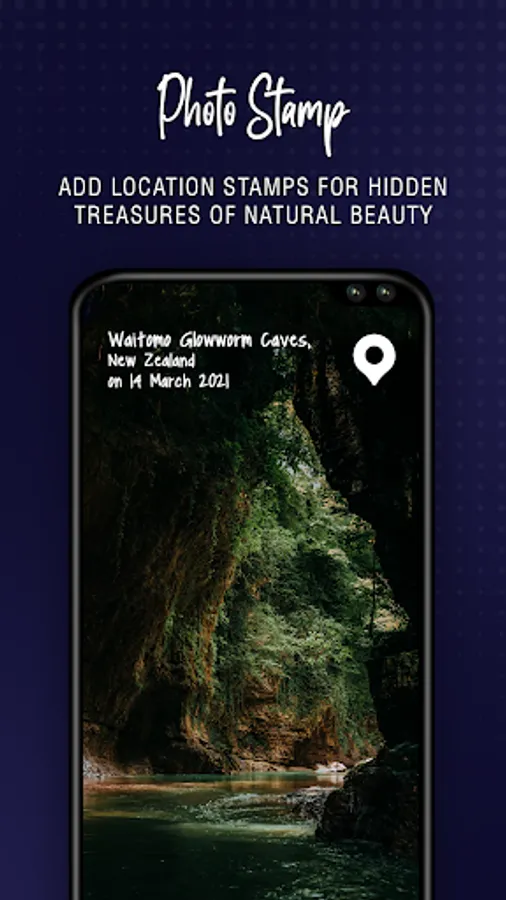Simply open the app and use the camera within the app and you'll automatically get details of location, time and date which will be blended on your photo. You need to keep your GPS on to get perfect location details.
