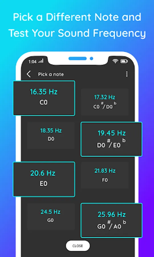 Frequency Generator Sound player lets you generate a sine, square, saw-tooth or triangle sound wave with a frequency between 1 Hz (infra-sound) to 22000 Hz (ultrasound) (hertz). This helps you to test the sound of your speakers in multiple level of frequency.