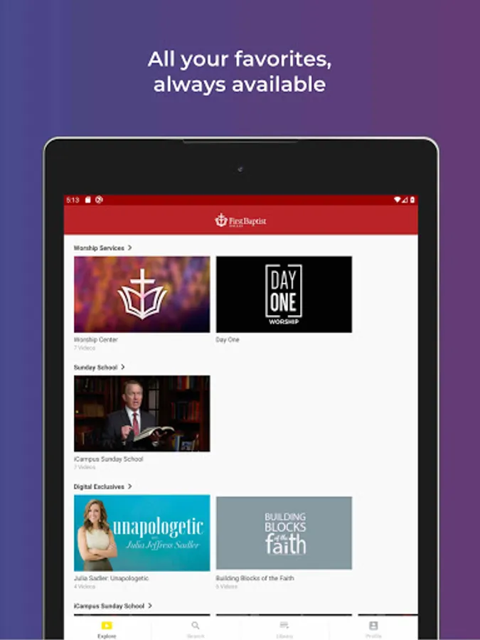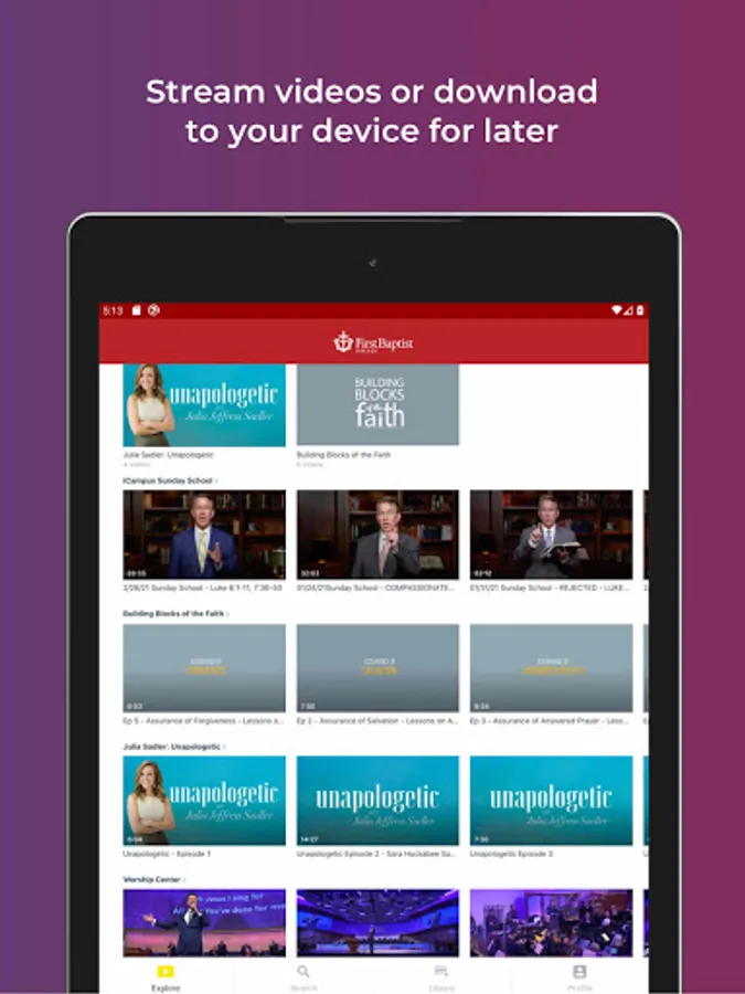 Enjoy life-changing content from the First Baptist Church of Dallas 24/7 with First Dallas TV. Offering excellent content for all-ages, First Dallas TV continues the mission of First Baptist Dallas to transform the World with God's Word...one life at a time!