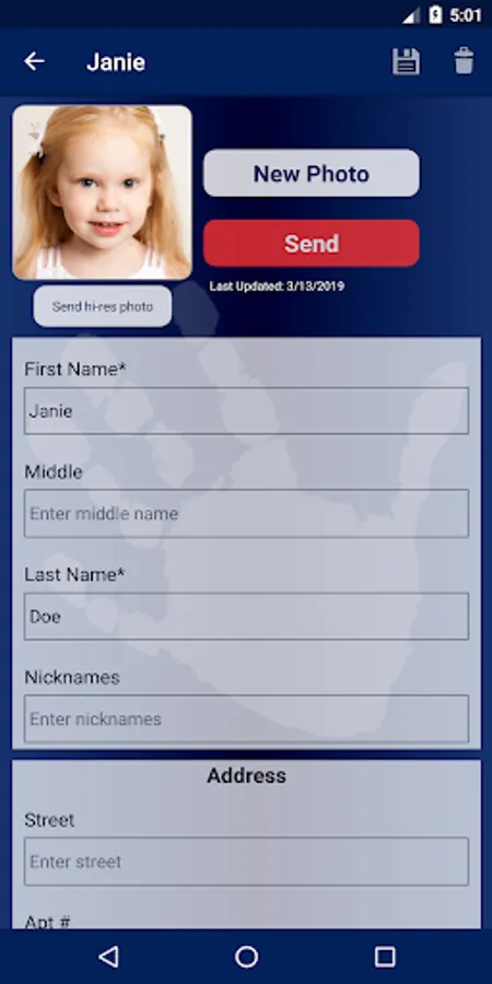 - Add photos for identifying characteristics (birthmarks, scars, etc.).