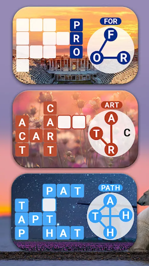 Solve word puzzles with stunning backgrounds while improving your vocabulary. Brain puzzle games such as word cross games are wonderful for your brain. Now you can prove your word puzzle skills!