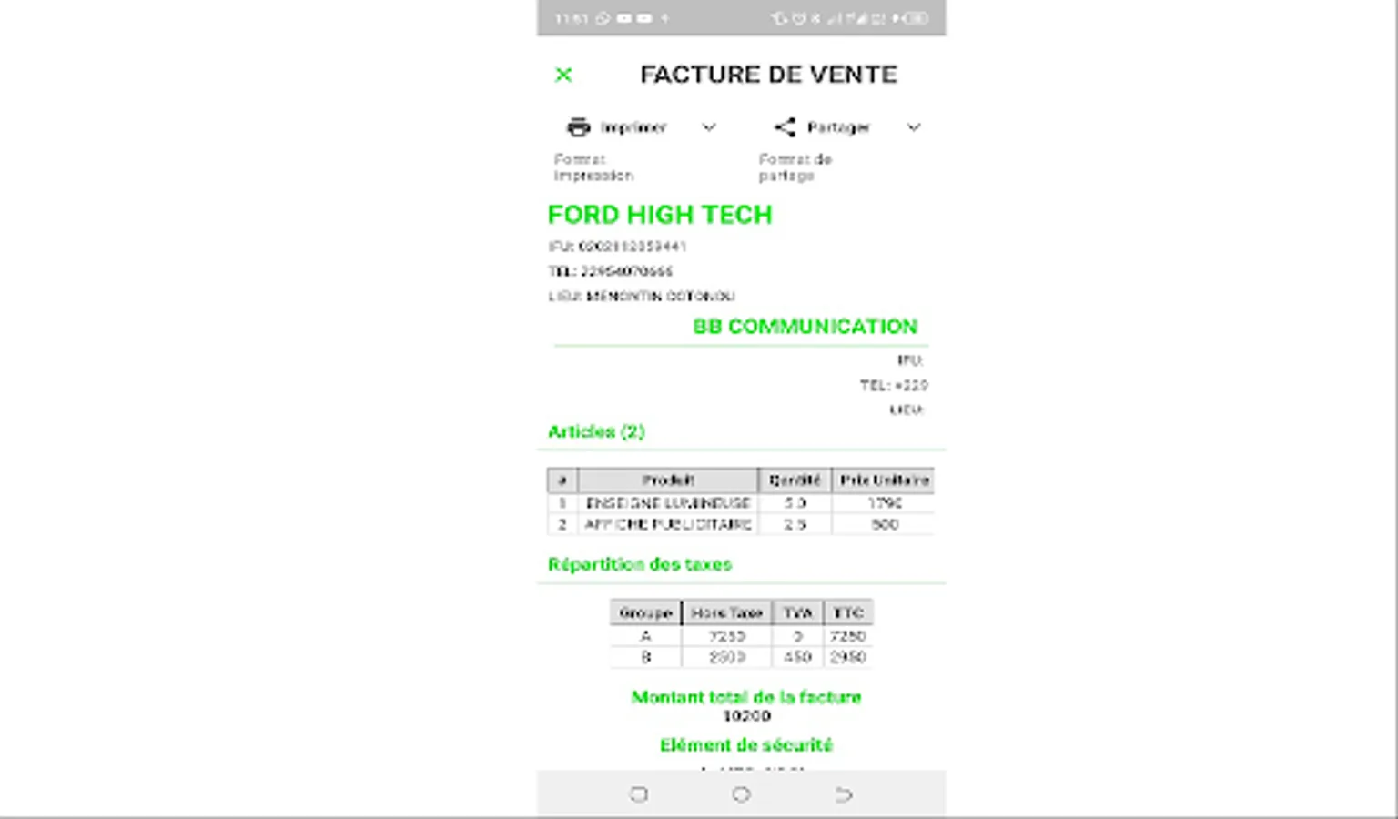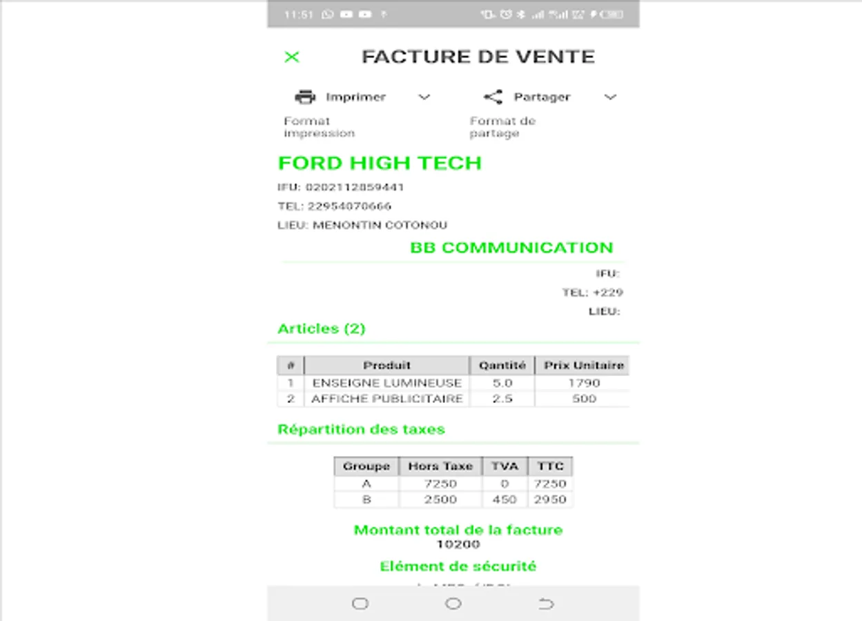 A mobile application to edit invoices and send it via Bluetooth or social networks and also print it via a connected printer.