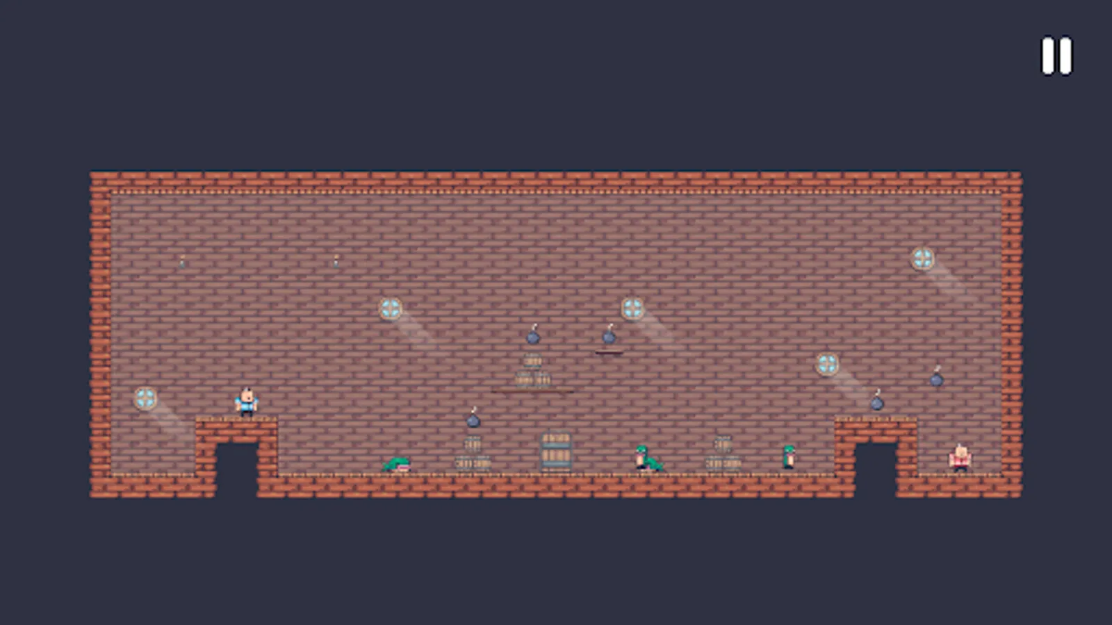 The cute and yet powerful twin pirate has to survive. red and blue pirates need protection from enemies they need to stay strong. They need to collect 6 bombs and reach the door. collect the bombs and reach the door.