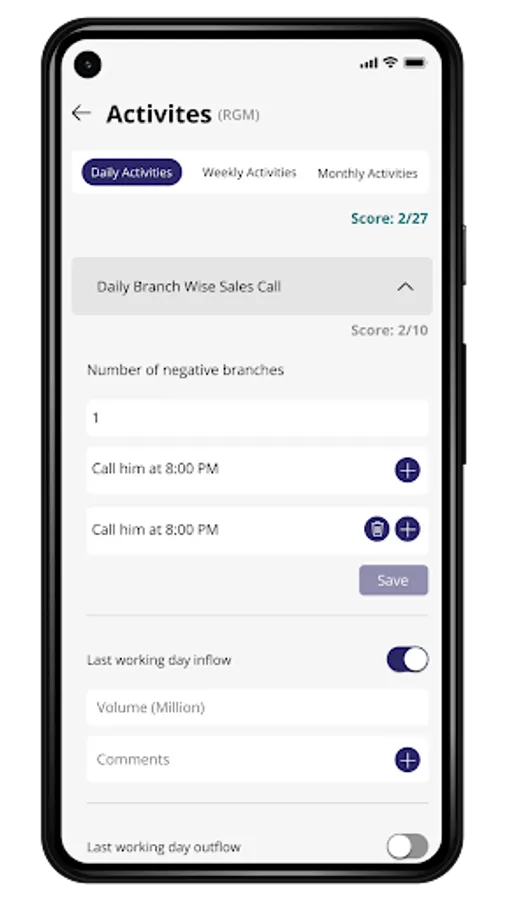 • Activities: Non negotiables that front end users have to input daily in order for them to be reported subsequently