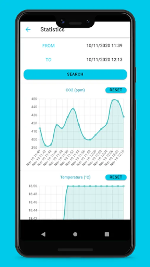 Download the app and start monitoring your indoor air quality data: follow the light of the device (red light: open! blue light: close!).