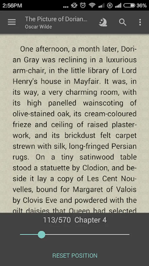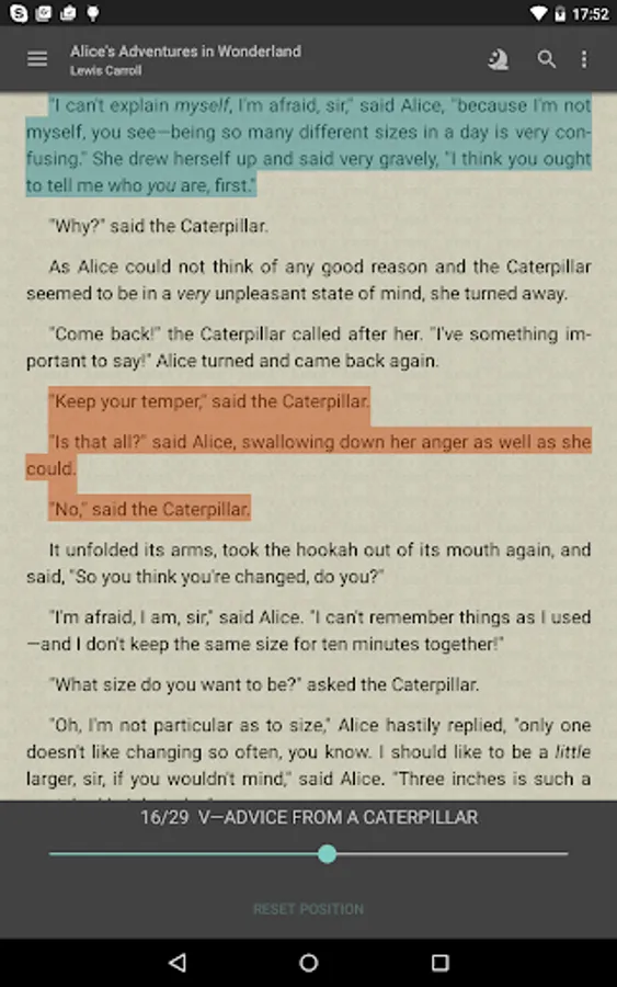 FBReader is fast and highly customizable - it can use external TrueType/OpenType fonts and custom backgrounds, the screen brightness can be adjusted while reading (slide finger up/down along the left screen edge), and different day/night color schemes can be selected.