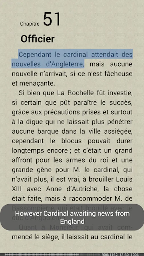 In FBReader Premium, you can translate sentences without leaving the application, using the integrated Google or Yandex translator.