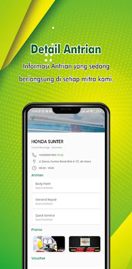 Online queuing service application for vehicle service as well as for queue registration, dealer search and real-time total queue information