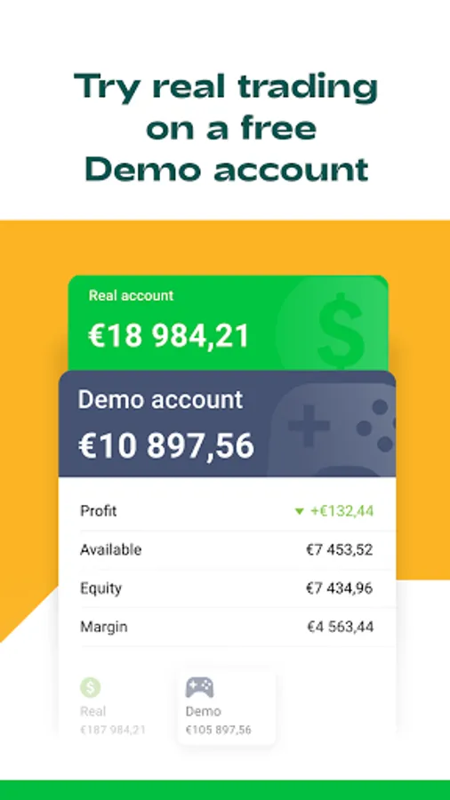 To try out all the app features, you can open a demo account with a €10 000 virtual balance.