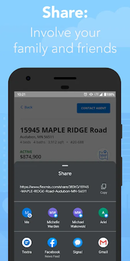 • Quickly share listings you’re excited about with your loved ones via text, email, and other sharing options that are available on your mobile device
