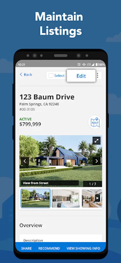 - Maintain listings - change status, edit price, add/ change photos, and schedule an open house