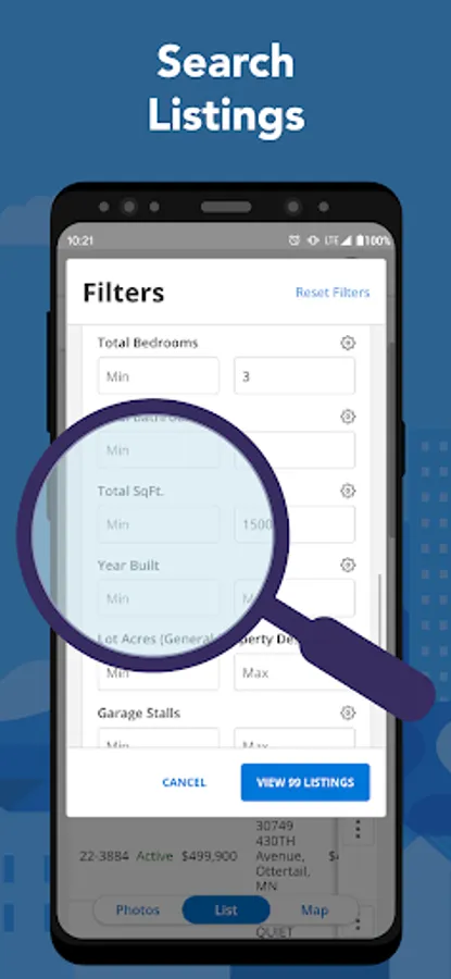 - Find listings based on current location, MLS #, and other criteria