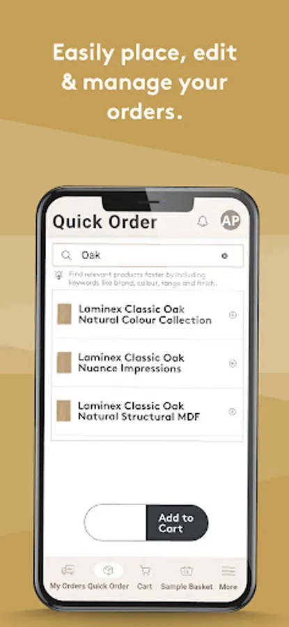 The Laminex TradeHub App is an easy-to-use app which allows you to place, view and track your orders on the go.