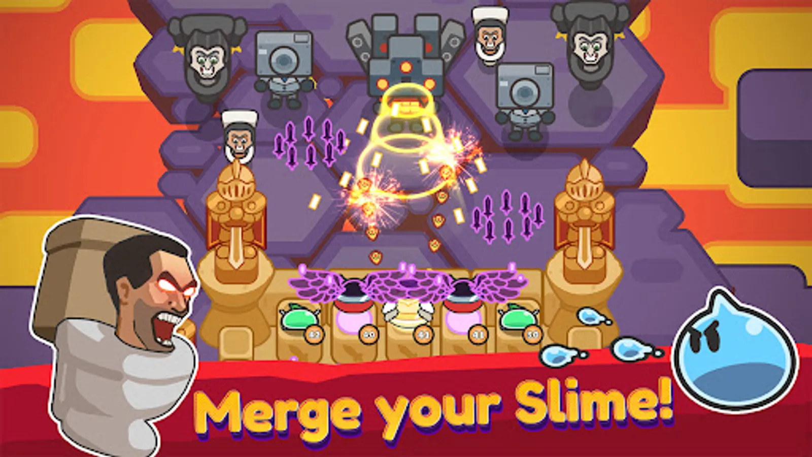 - Upgrade your Slime infinitely by merging and collect mighty skills continuously.