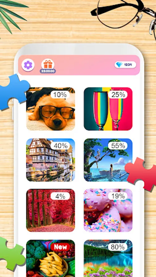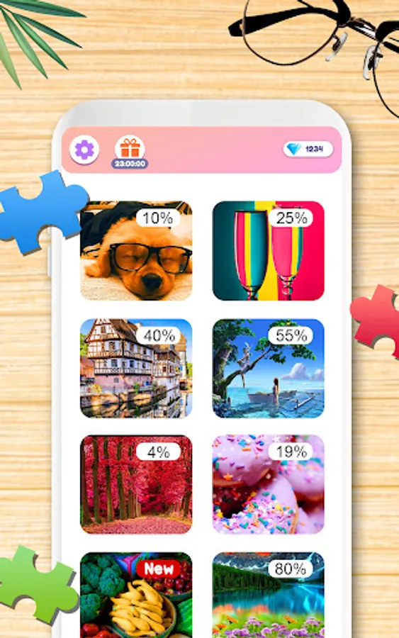 Thousands of high-quality HD pictures in a wide variety of collections included in this jigsort game, such as wonderful landmarks, true nature, delicious foods, lovely animal, etc. Some puzzle pictures are super simple but some others are more challenging, find your perfect balance. Especially, this picture puzzle challenge is totally free and no wifi needed so you can sort unlimited puzzle pictures whenever you feel dreadful to relax, or challenge your friends in party.