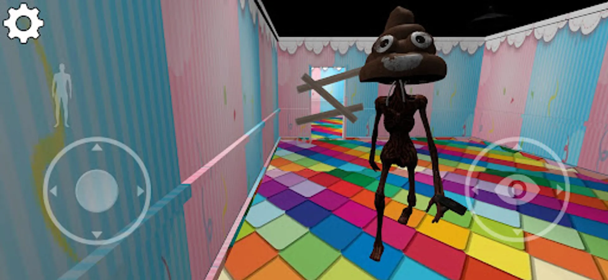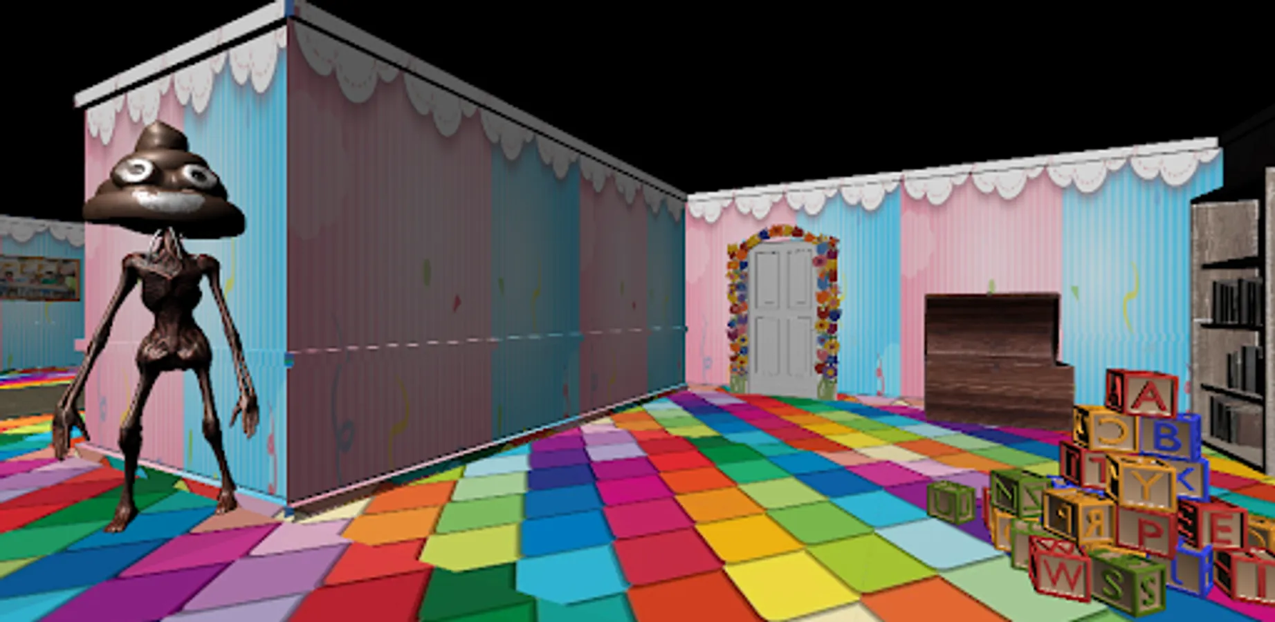 Welcome to the Poop House , where the daunting dark Monster holds you captive within its eerie abode. Your mission is to find a way to escape, but beware, the Monster's keen senses can pick up even the slightest noise. One wrong move, and it will come rushing towards you. Seek refuge in wardrobes or under beds to stay out of sight.