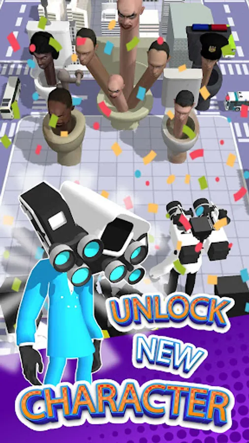 But it's not just about merging toilets; the real thrill lies in the Camera Battles! Each toilet ally can equip a camera as its weapon, and players get to strategize and choose from an array of cameras with different effects and strengths. From flashy flash cameras to sneaky spy cameras, each camera adds a layer of tactical depth to the battles.