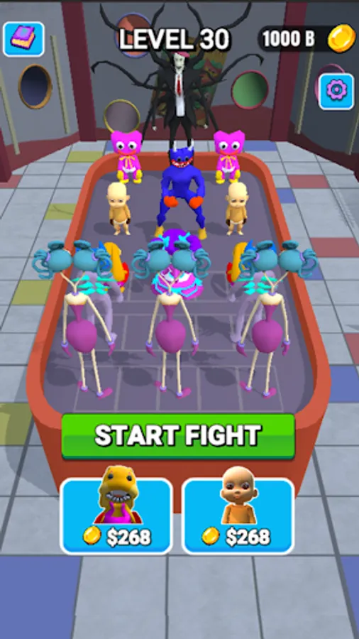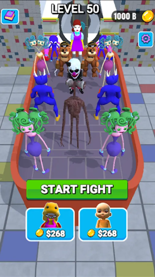 Merge to evolve, Build your powerful team with Siren head, Hogie waggy, Pissy, Mommy Monster long legs, Toys Factory's Monster, Teddy bear.. & be the 1% of gamers who complete the task and unlock all of the creatures. Are you ready for this challenge?