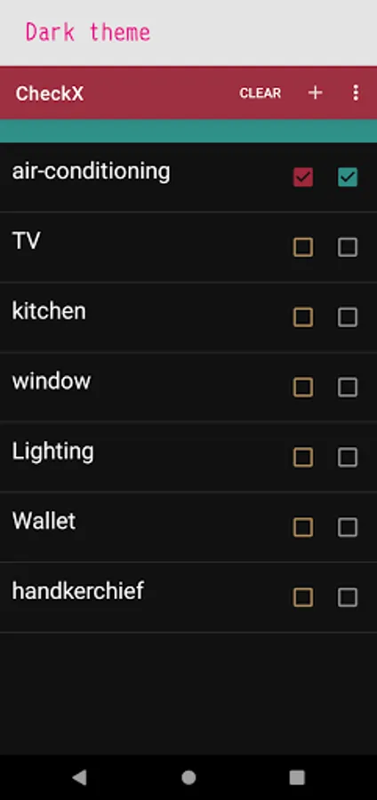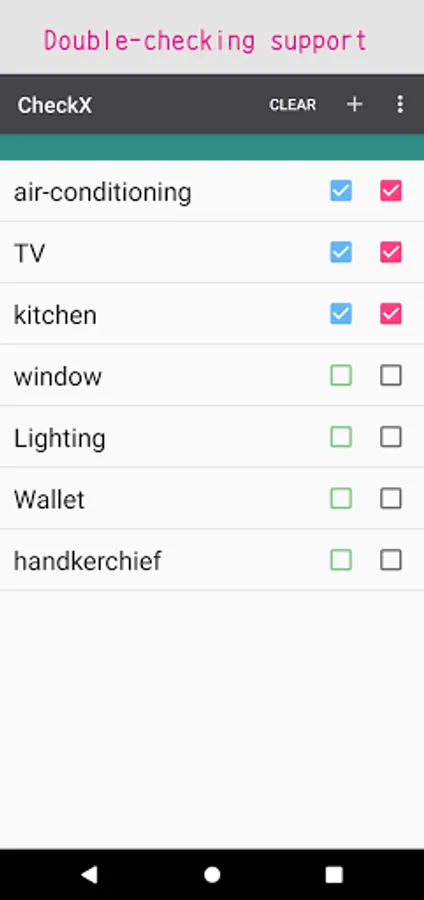 CheckX is a checklist application that allows you to check for forgotten items, door closures, etc. with simple operations. Please use it for checking before you go out or for task management.