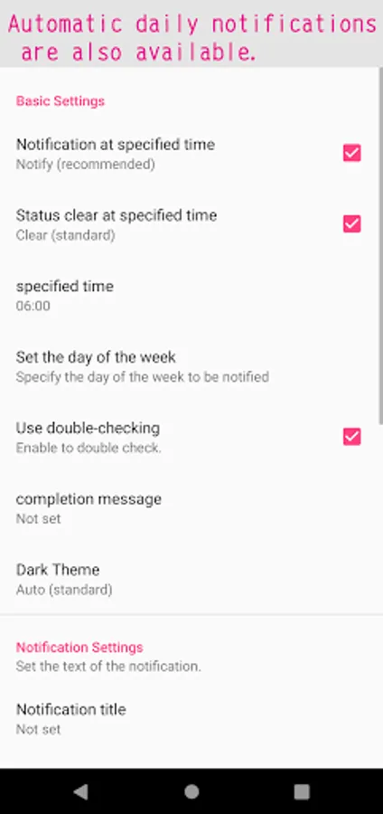 - Automatic daily notification Notification when the time comes