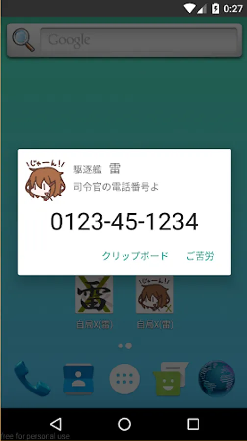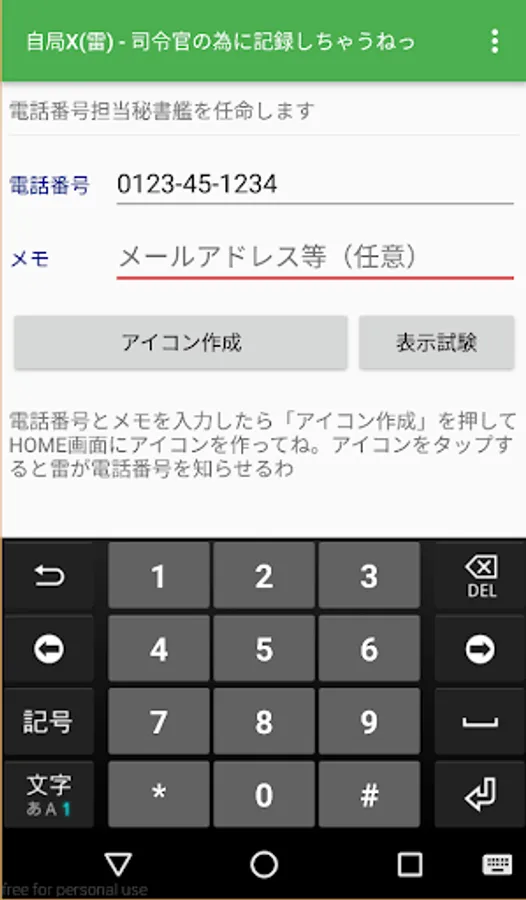 It is an application with the theme of a fleet - a ship - this ship. Thunder will tell you the phone number (local number). ☆ Icon design is Professor Yugari Koguchi.