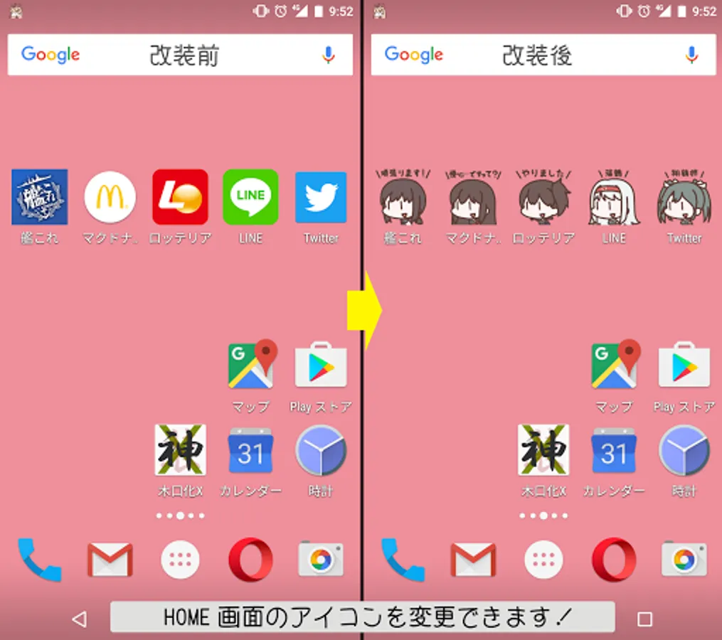 A Kancolle, this is an icon changing app. An icon of a HOME screen, this can change a Kancolle in an icon.