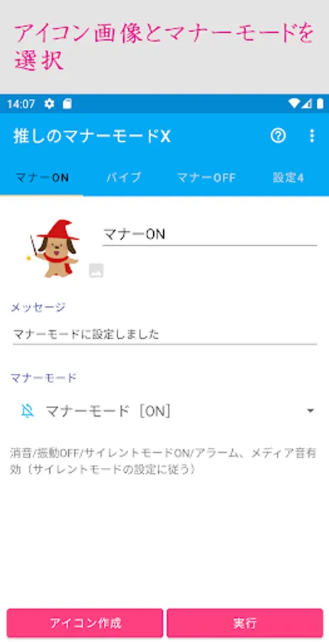 Create an icon from any image. Tap the icon on the home screen to set silent mode.