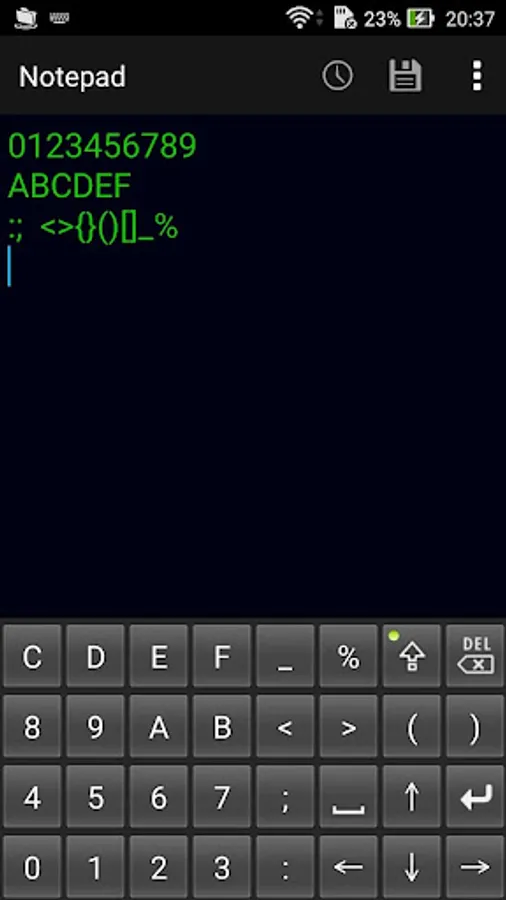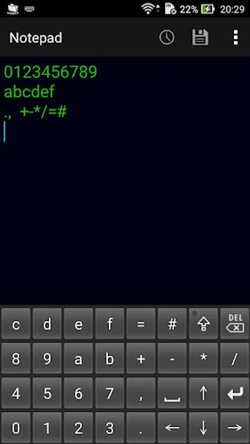 This is a numeric keypad of a soft keyboard which can input hexadecimal number.