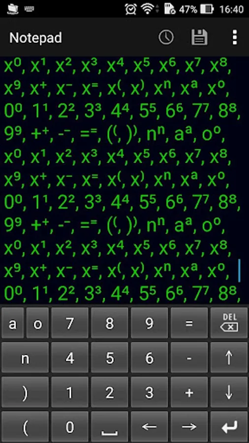 This is a soft keyboard which can input "superscript number" used to use for expressing square or cube, etc. in mathematical equations at one touch.
