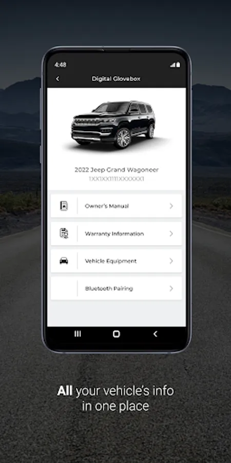 Whether you’re out adventuring in your Wagoneer, relaxing in the comfort of your home or just about anywhere else, the new available Wagoneer app lets you stay in touch and in control of your vehicle like never before. Need to contact your dealer? No problem—simply use the My Dealer feature to find your preferred dealership’s address, schedule service appointments, or call them directly with the touch of a button. Easily access your vehicle’s info—including the owners manual, service history and more—with the My Garage and Digital Glovebox features. And stay up to date on open recalls using the Recall Alert, so you’re always one step ahead. If your vehicle is equipped, you can remotely start or stop your vehicle, lock or unlock the doors and activate the horn or exterior lights. You now have access to more services than ever, ranging from entertainment to available Navigation, safety and security features and more, all offering new levels of convenience and the peace of mind you deserve. Some features are also available on compatible smartwatches, including the Wear OS watch. Wear OS watch app is a companion app to the mobile app.