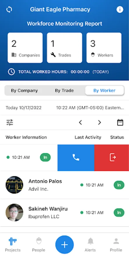 Application used by supervisors at construction job sites to manage workers. It also includes workforce monitoring reports and the ability to clock workers in and out. Provides access to worker information that includes a photo of the worker, worker's first name, last name, employer, badge number, badge expiration date and badge status.