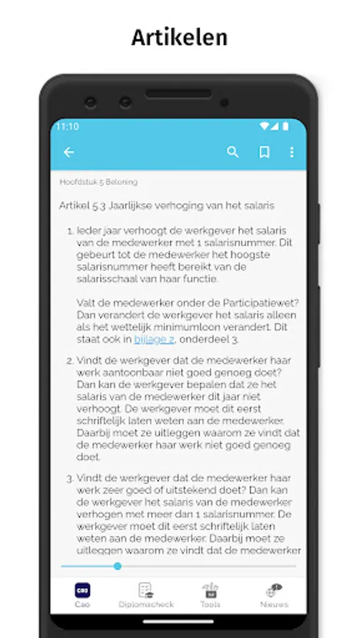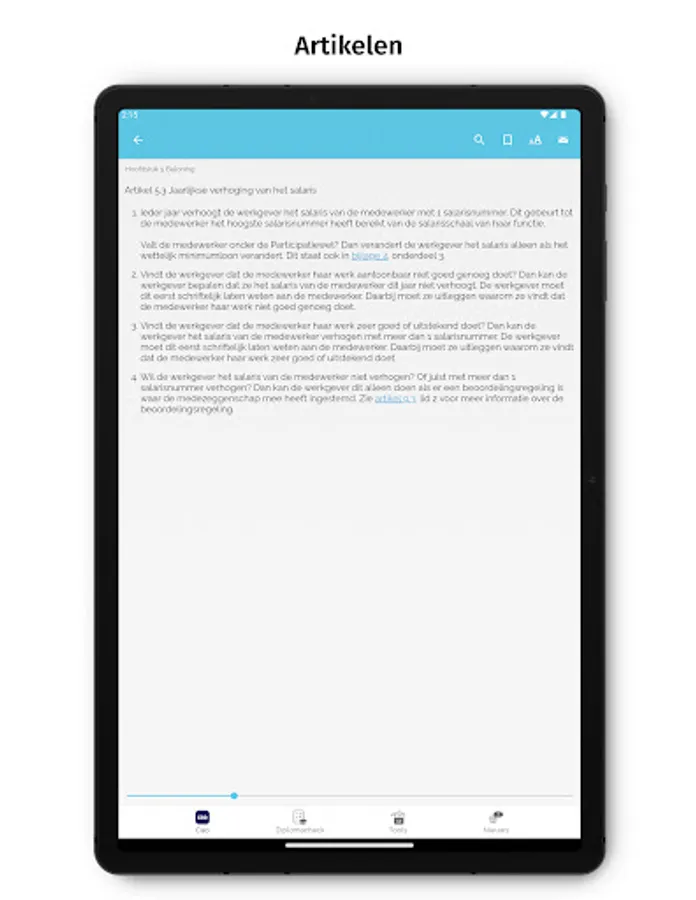 In addition to the complete collective labor agreement text, the app also contains a number of useful tools such as the diploma check, calculating the date of maternity leave and frequently asked questions.