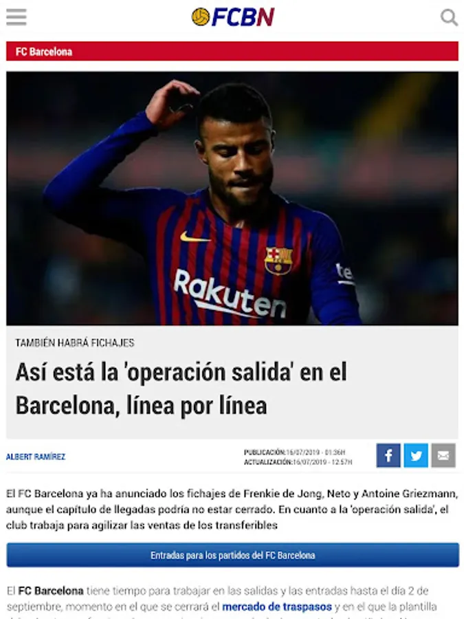 constantly updated with the last time Barca team and a summary of the most important news about national and international football.